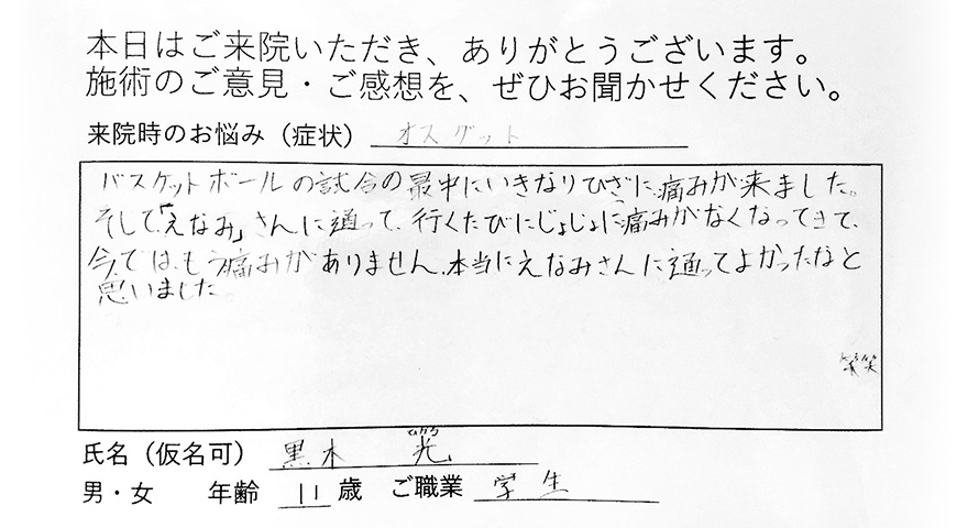 痛みがなくなりました」黒木 光ちゃん(11才)・バスケットボール