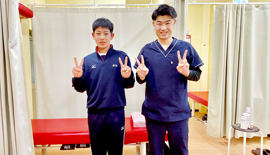 当院が練習や部活を休まなくてもいいと伝えるのは、施術を受けることで以前出来なかった練習が出来る程度まで痛みが改善するためです。